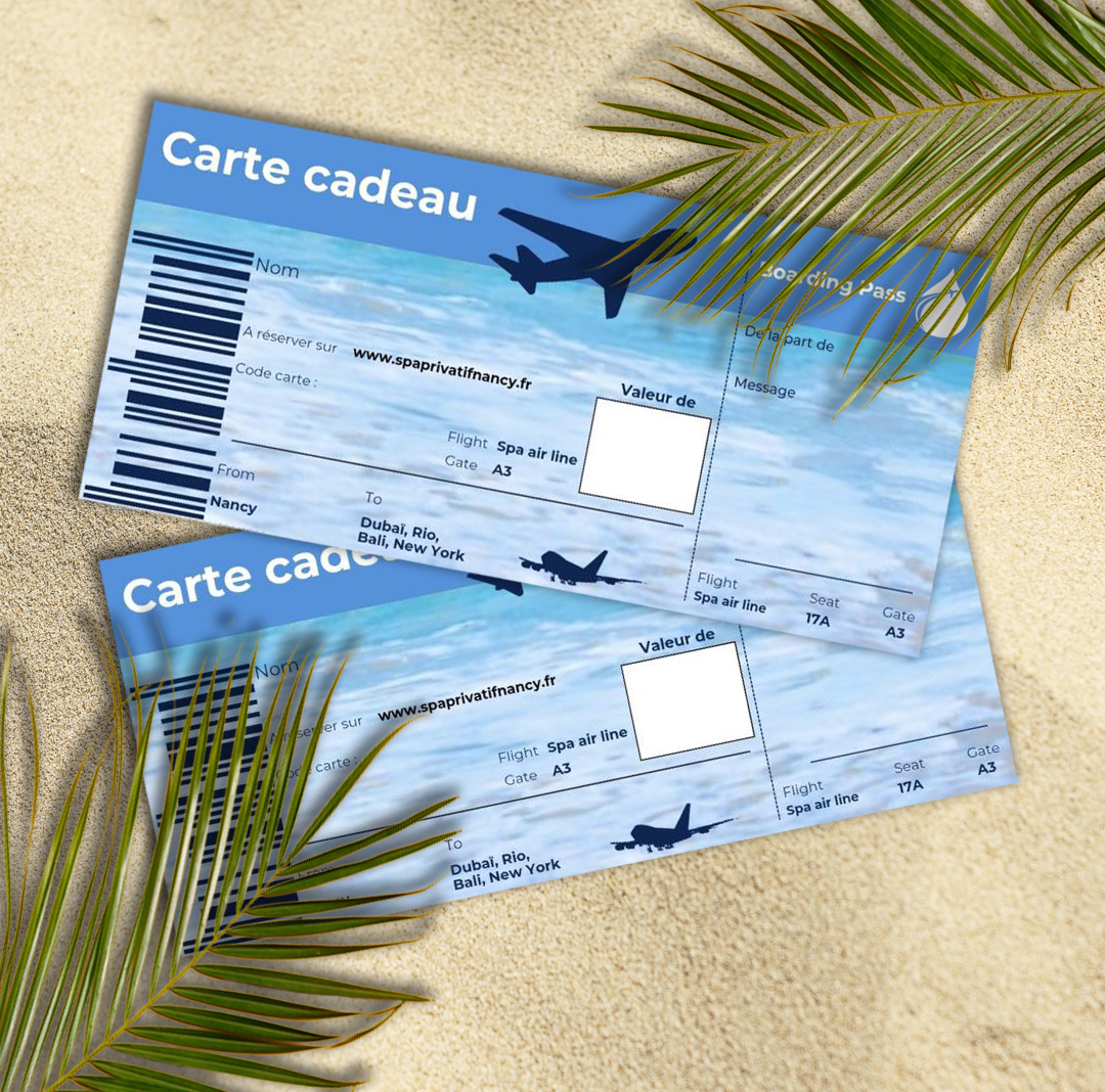 Une envie d’offrir un cadeau original à un proche ? Pensez à notre carte cadeau ! Présentée sous forme d’un billet d’avion pour un voyage le temps d’un moment dans l’une de nos salles avec spa hammam et sauna entièrement privatisées. Surprise garantie !